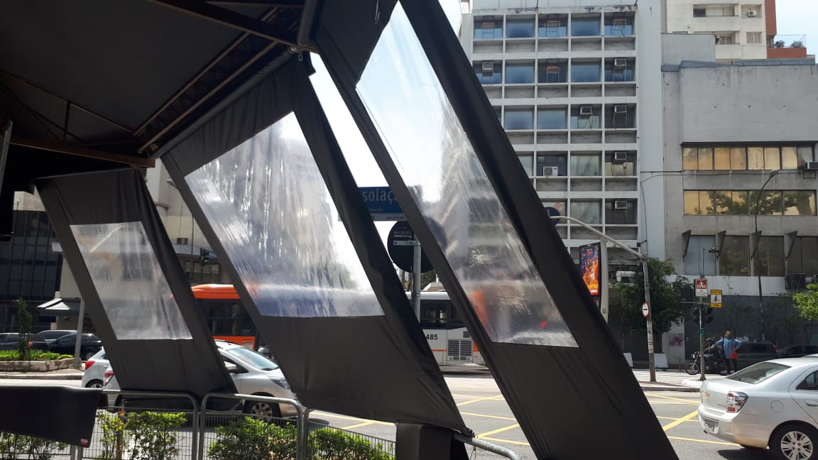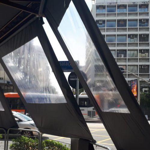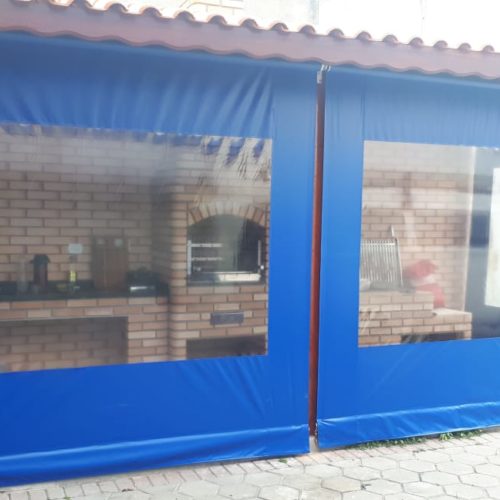 São cortinas desenvolvidas com estrutura em ferro galvanizado com pintura automotiva e revestidas em lona pvc.