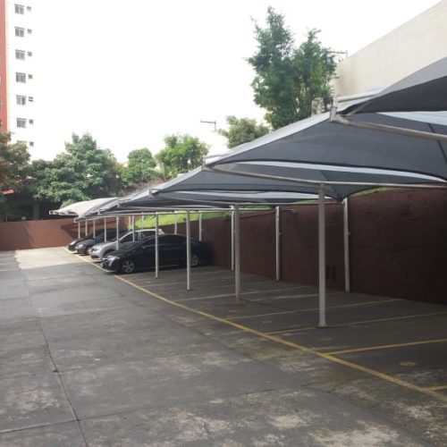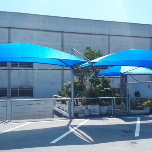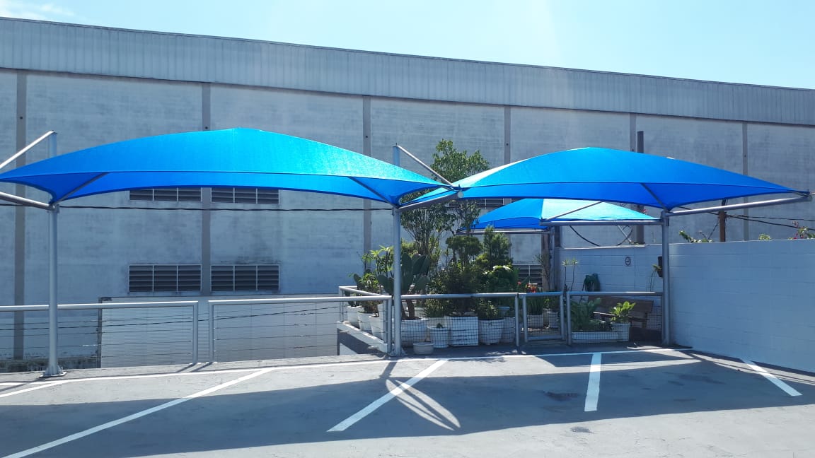 São toldos desenvolvidos com estrutura em ferro galvanizado.