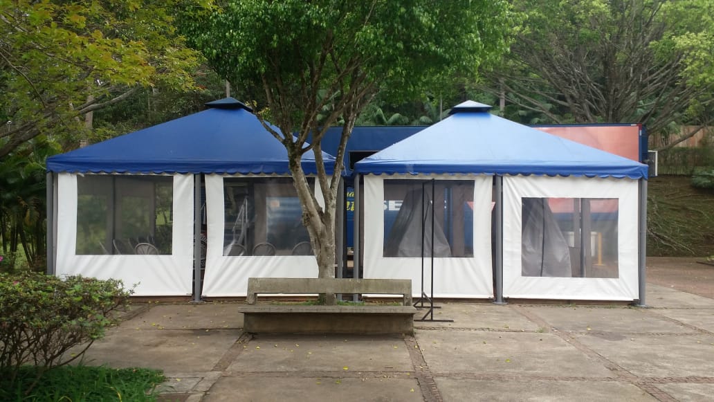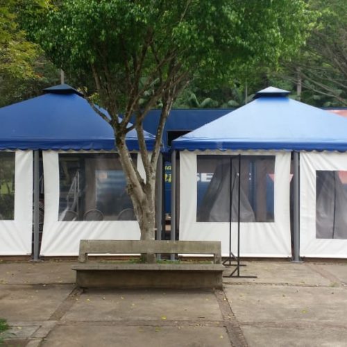 São desenvolvidas com estrutura em ferro galvanizado com pintura automotiva e revestidos em lona pvc